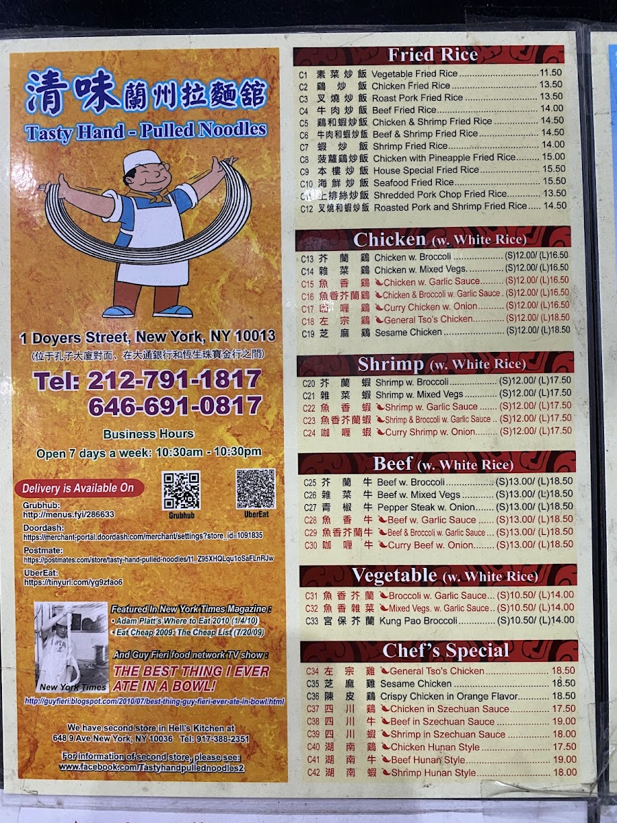 If you find yourself wandering the vibrant streets of Chinatown, New York, make sure to stop by Tasty Hand-Pulled Noodles. This local gem specializes in authentic Chinese cuisine that delights locals and visitors alike, inviting you to experience the heart of culinary tradition with every delicious bite. Located at 1 Doyers St, this cozy establishment captures the essence of Chinatown's bustling atmosphere while providing a no-frills dining experience that feels refreshingly genuine.